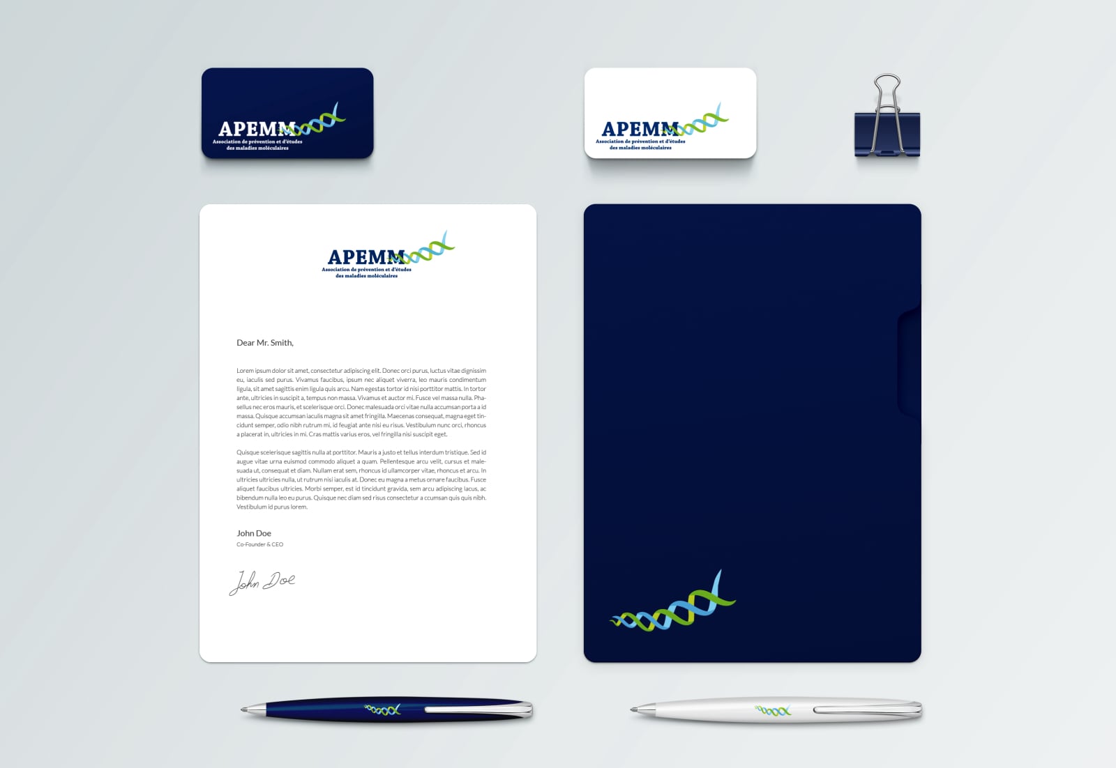 Réalisation de l'identité visuelle de l'APEMM, l'Association de Prévention et d'Étude des Maladies Moléculaires. #identitévisuelle#logo