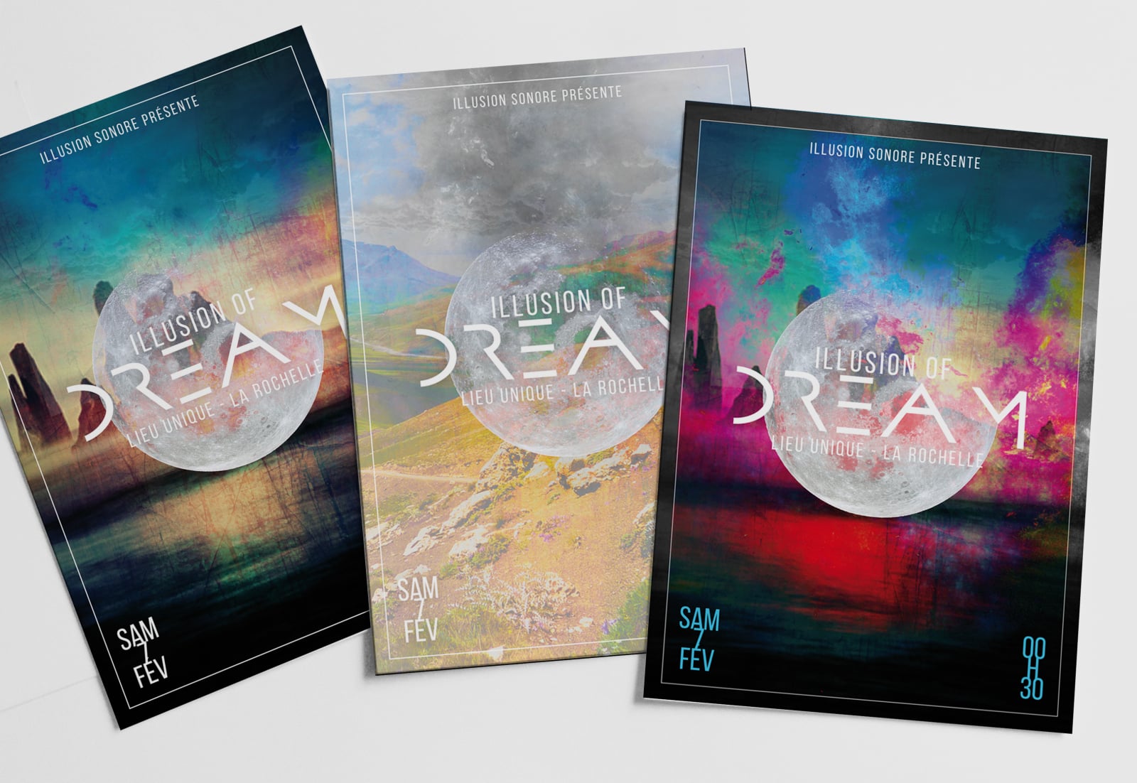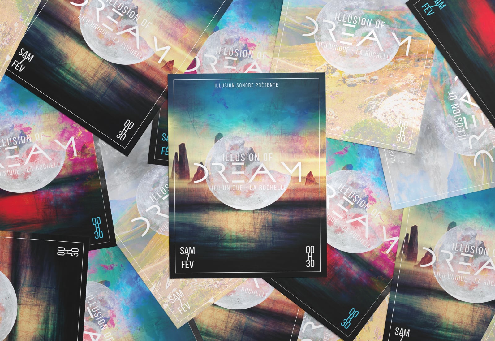 Réalisation de flyers pour la soirée "Illusion of Dream" de l'association Illusion Sonore, organisatrice d'événements musicaux. #illusionsonore#affiche#flyer