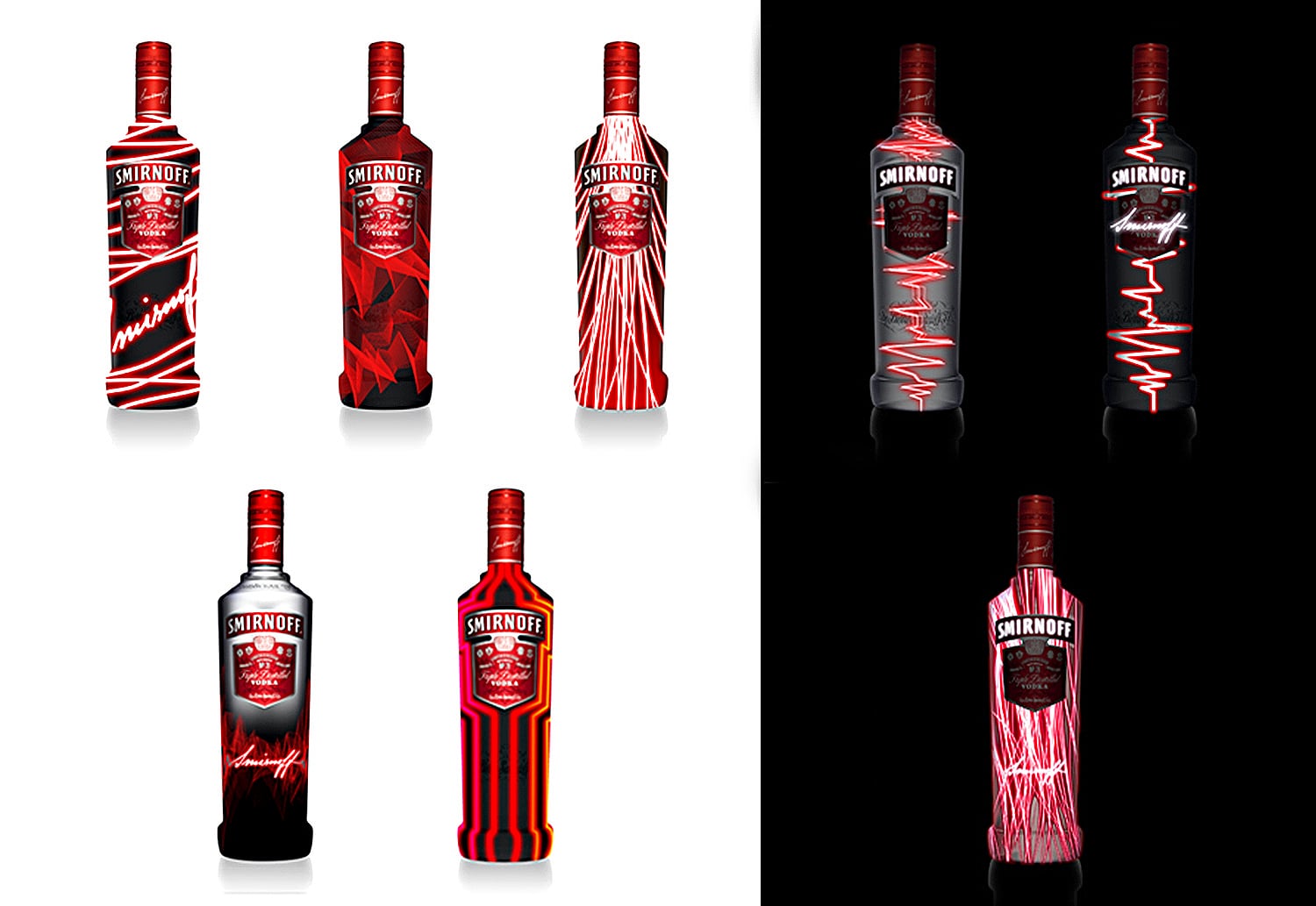 Propositions d'habillages de bouteille pour l'édition limitée de la bouteille Smirnoff.#packaging#habillagebouteille#éditionlimitée
